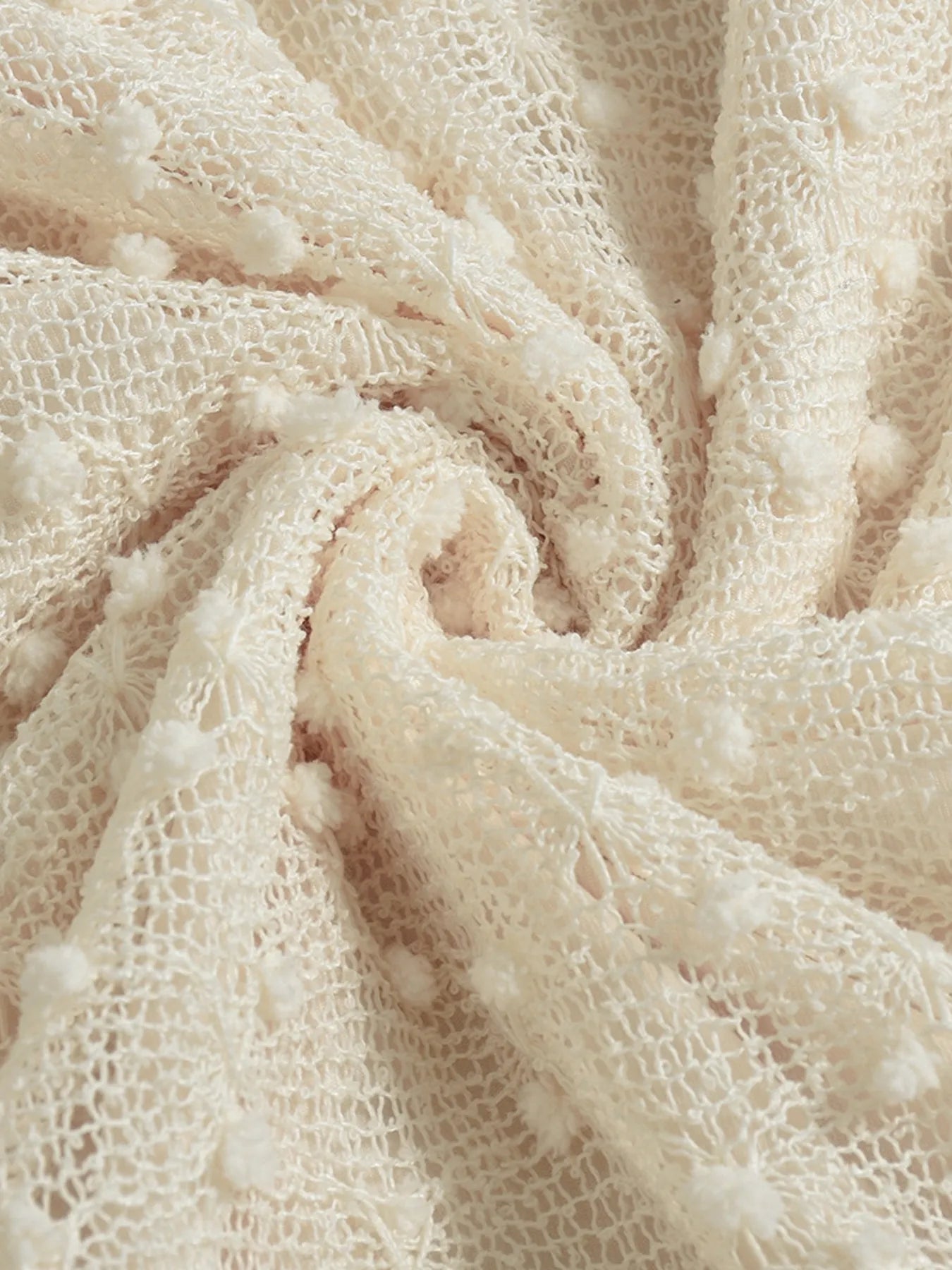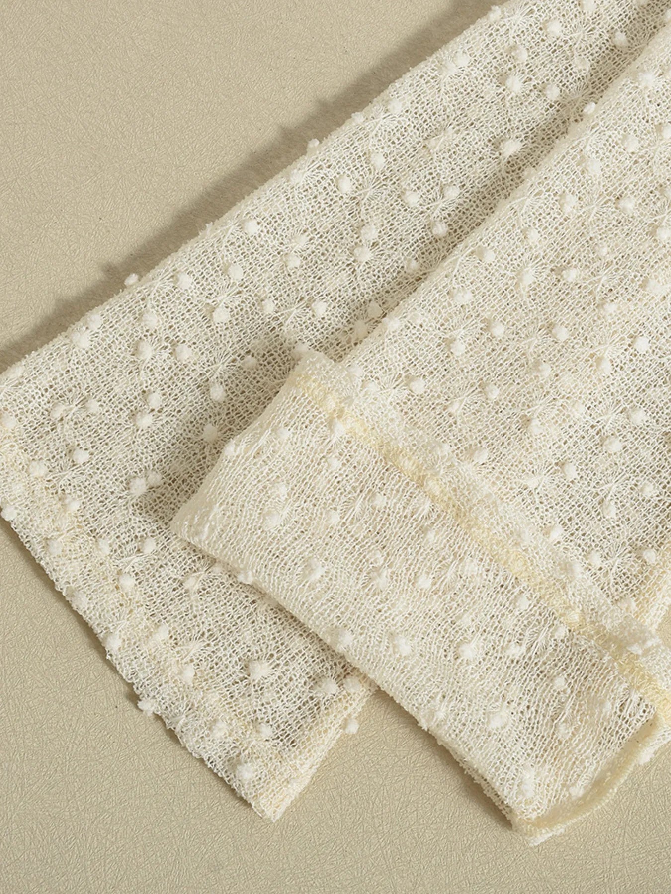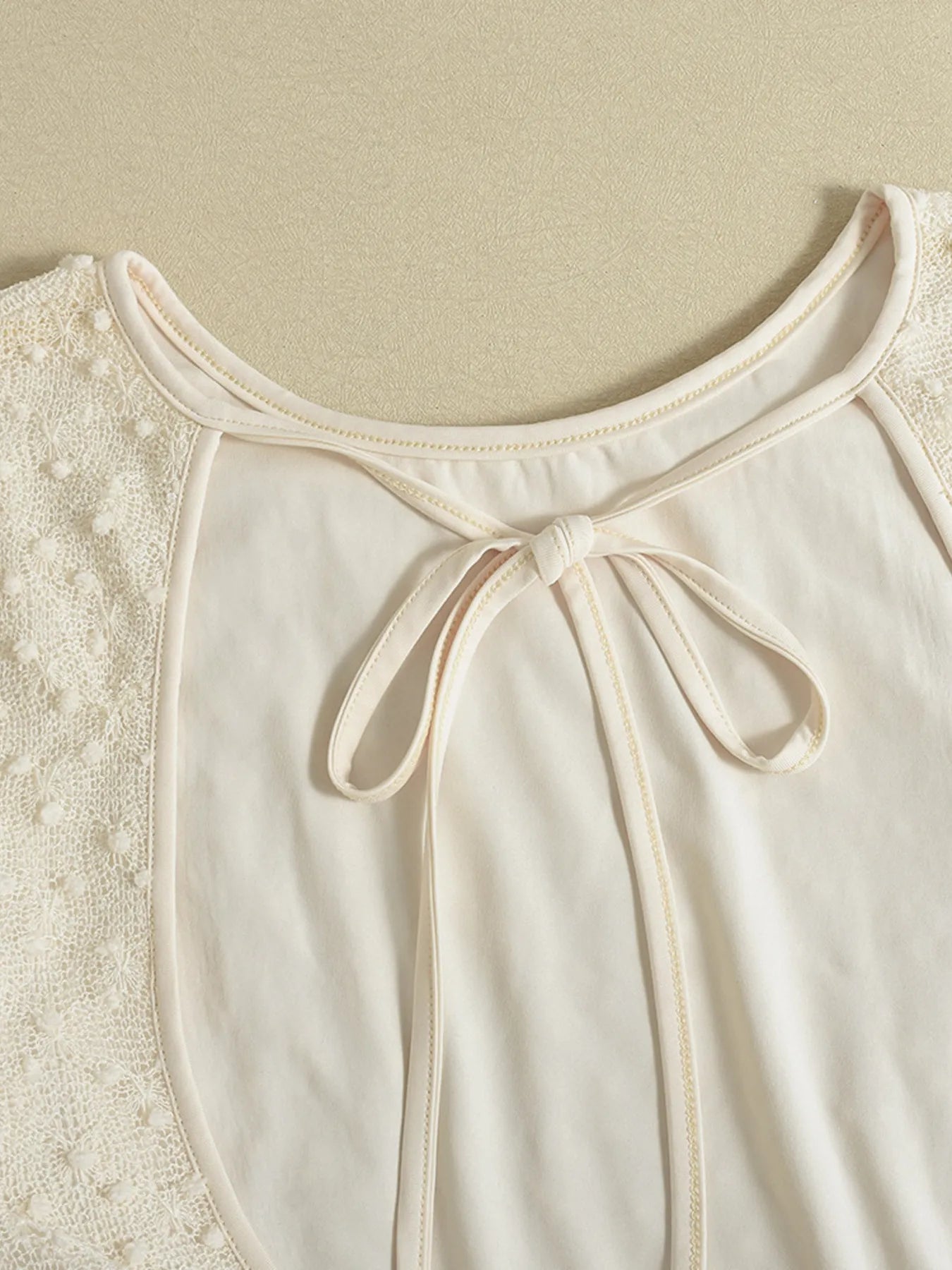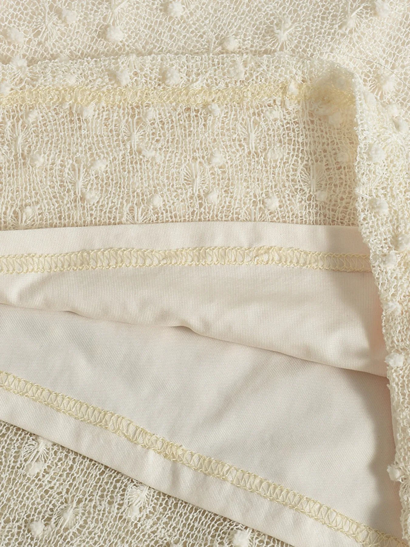 Vestido corto beige con mangas largas y diseño suizo