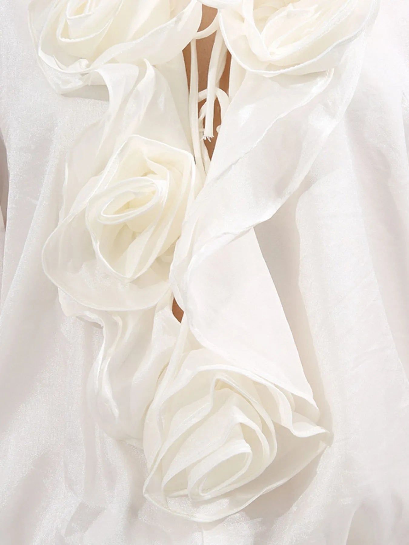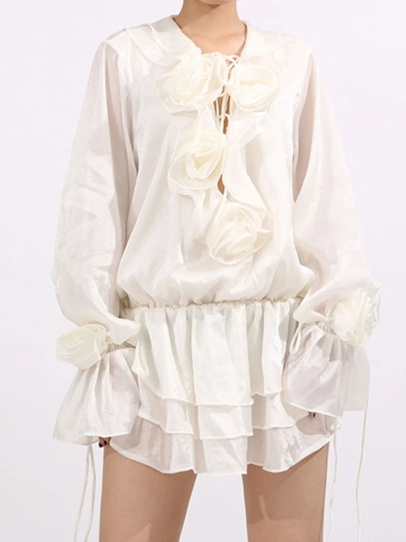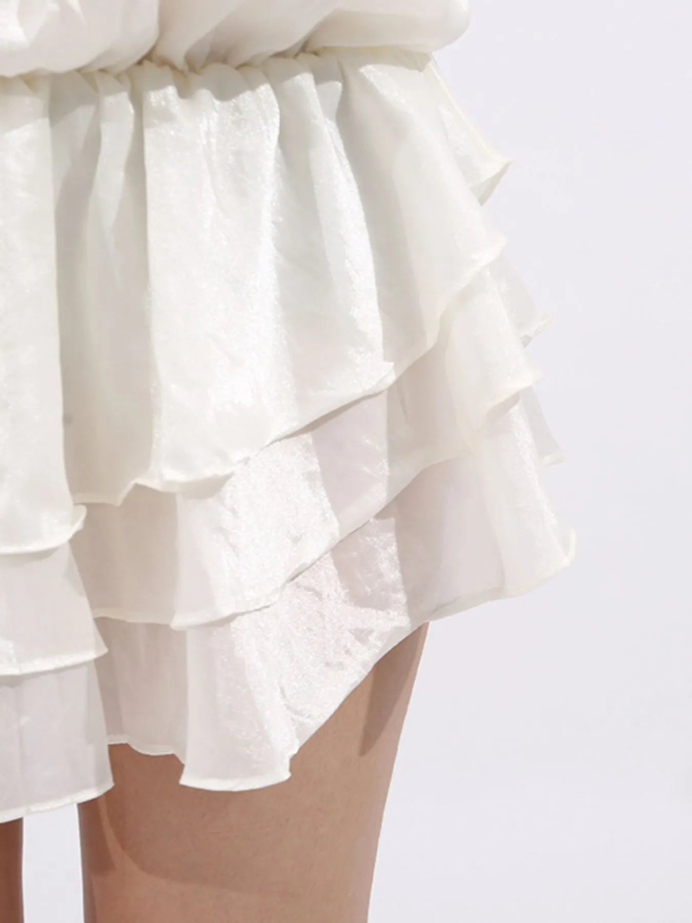 Vestido Corto Blanco con Volantes y Mangas Largas