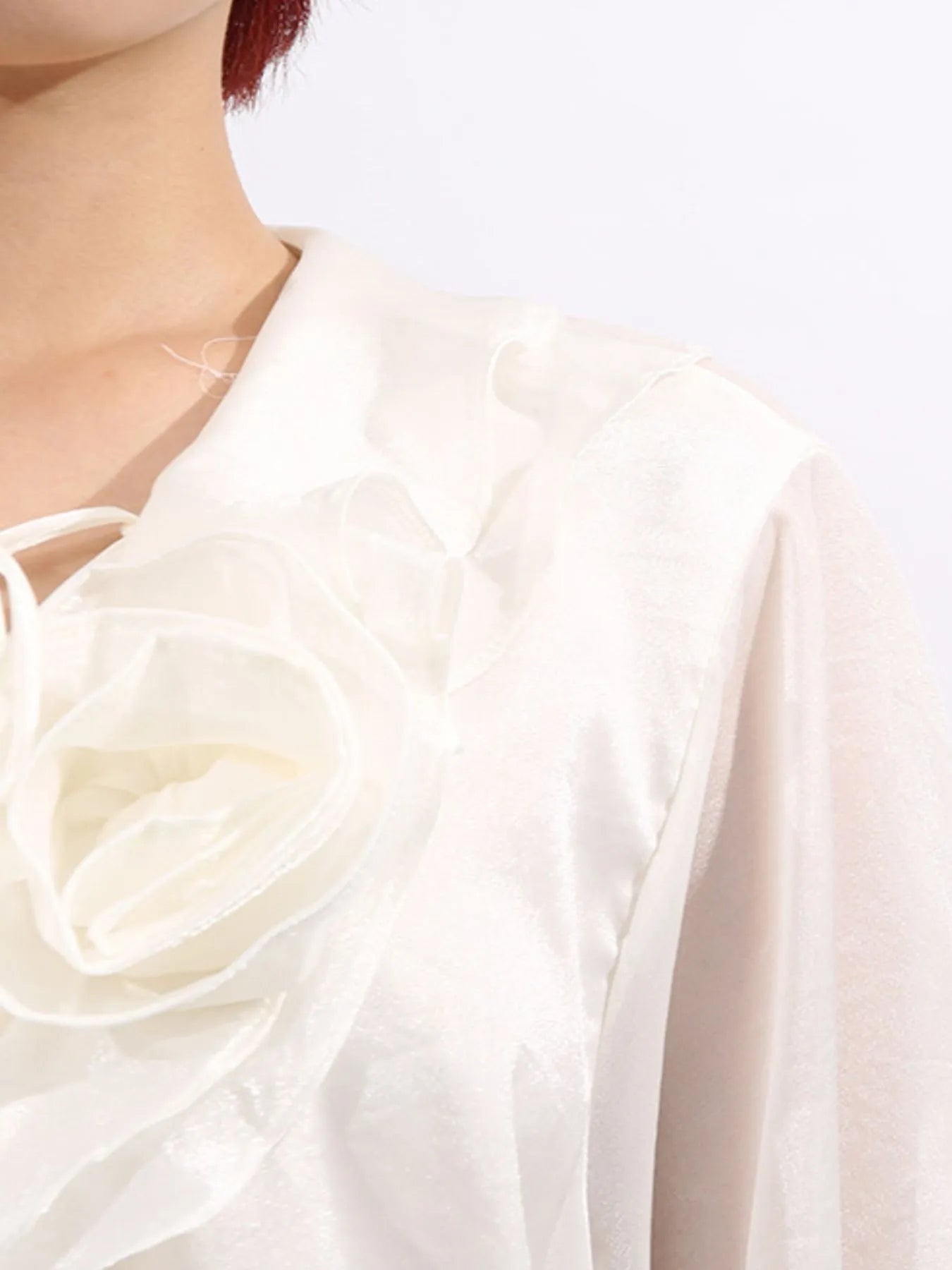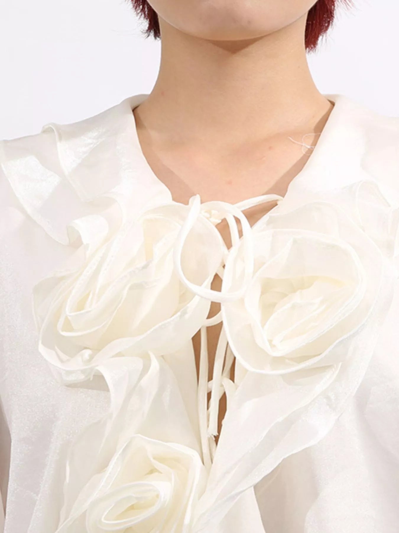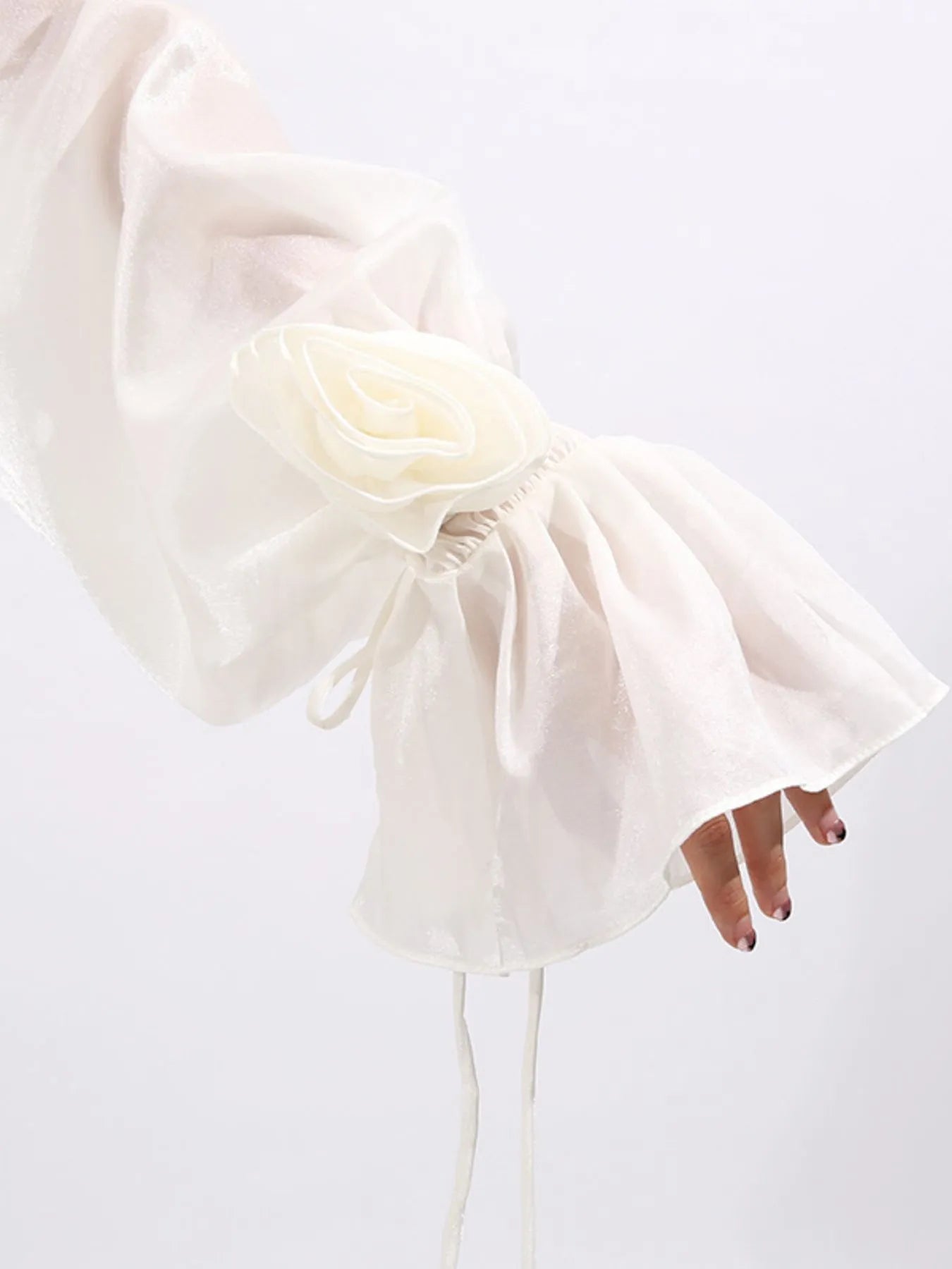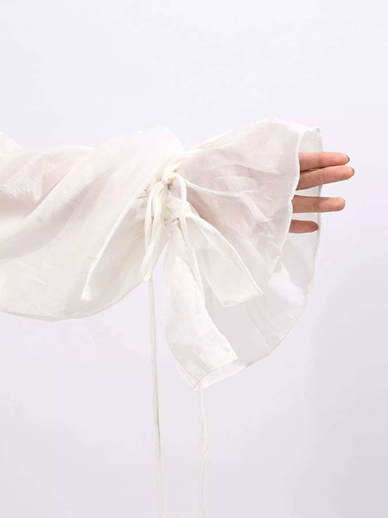 Vestido Corto Blanco con Volantes y Mangas Largas