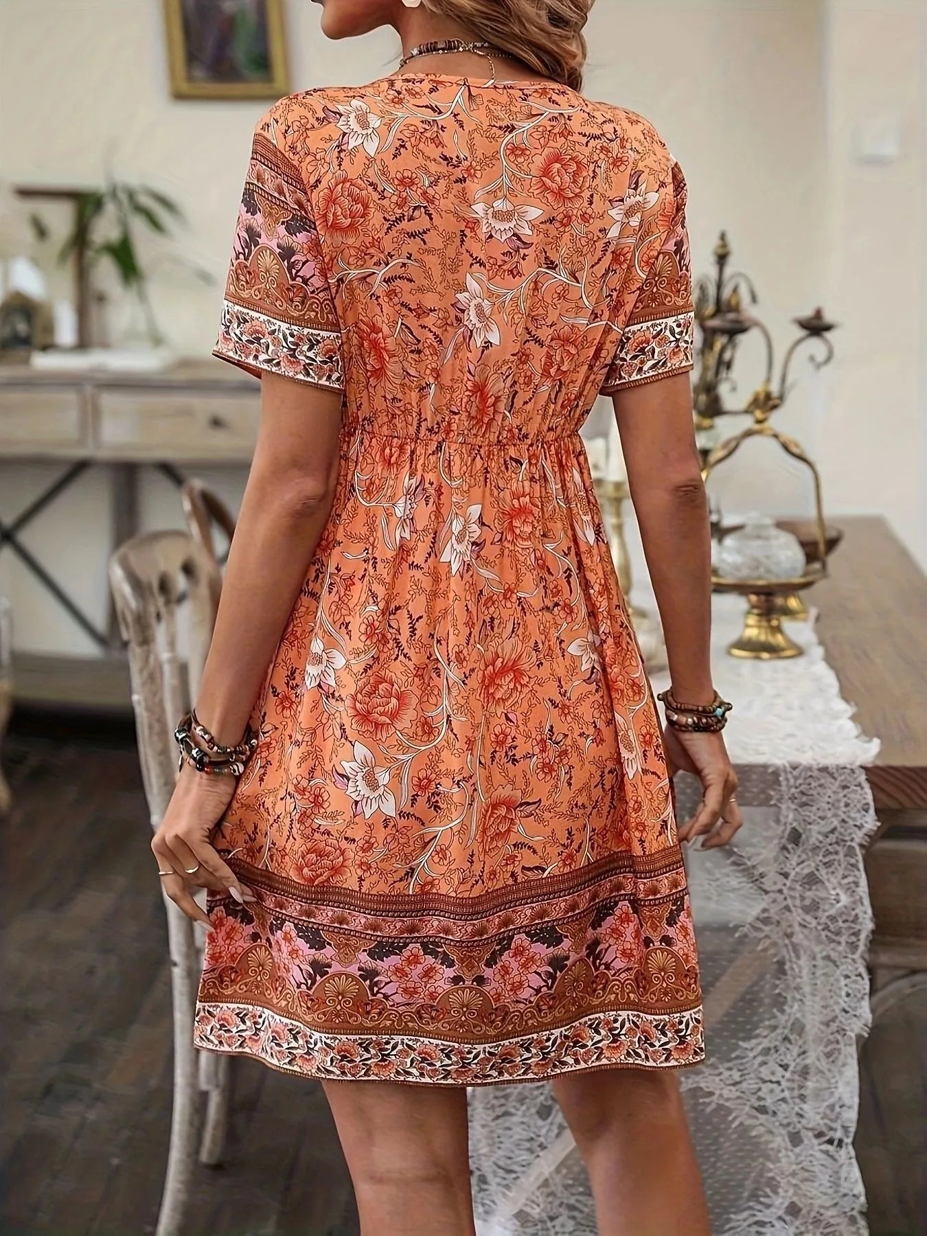 Vestido Corto Naranja con Lazo y Mangas Cortas