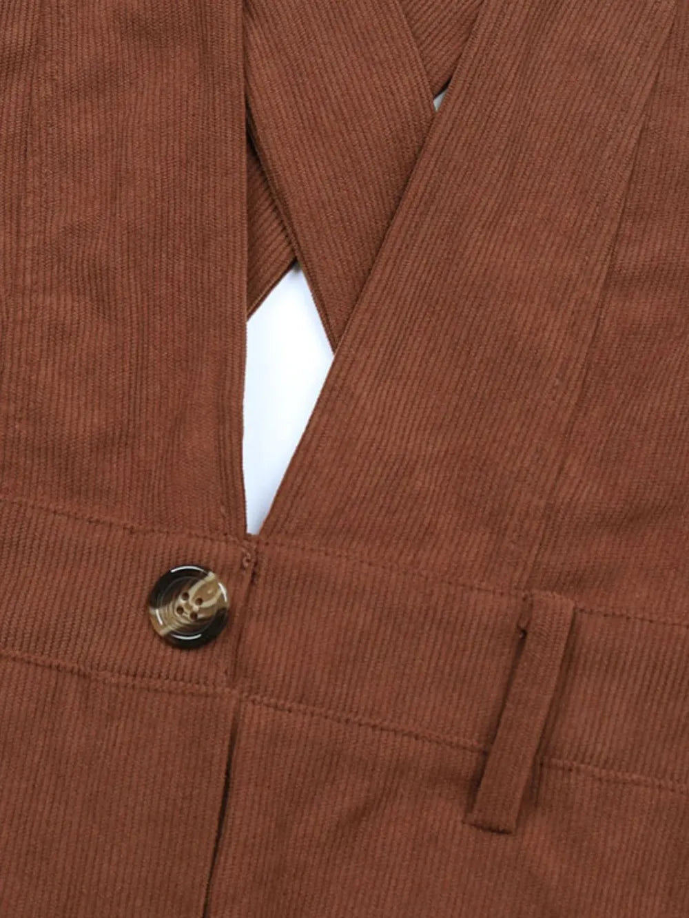 Vestido Largo Marrón con Bolsillos y Abertura Perfee