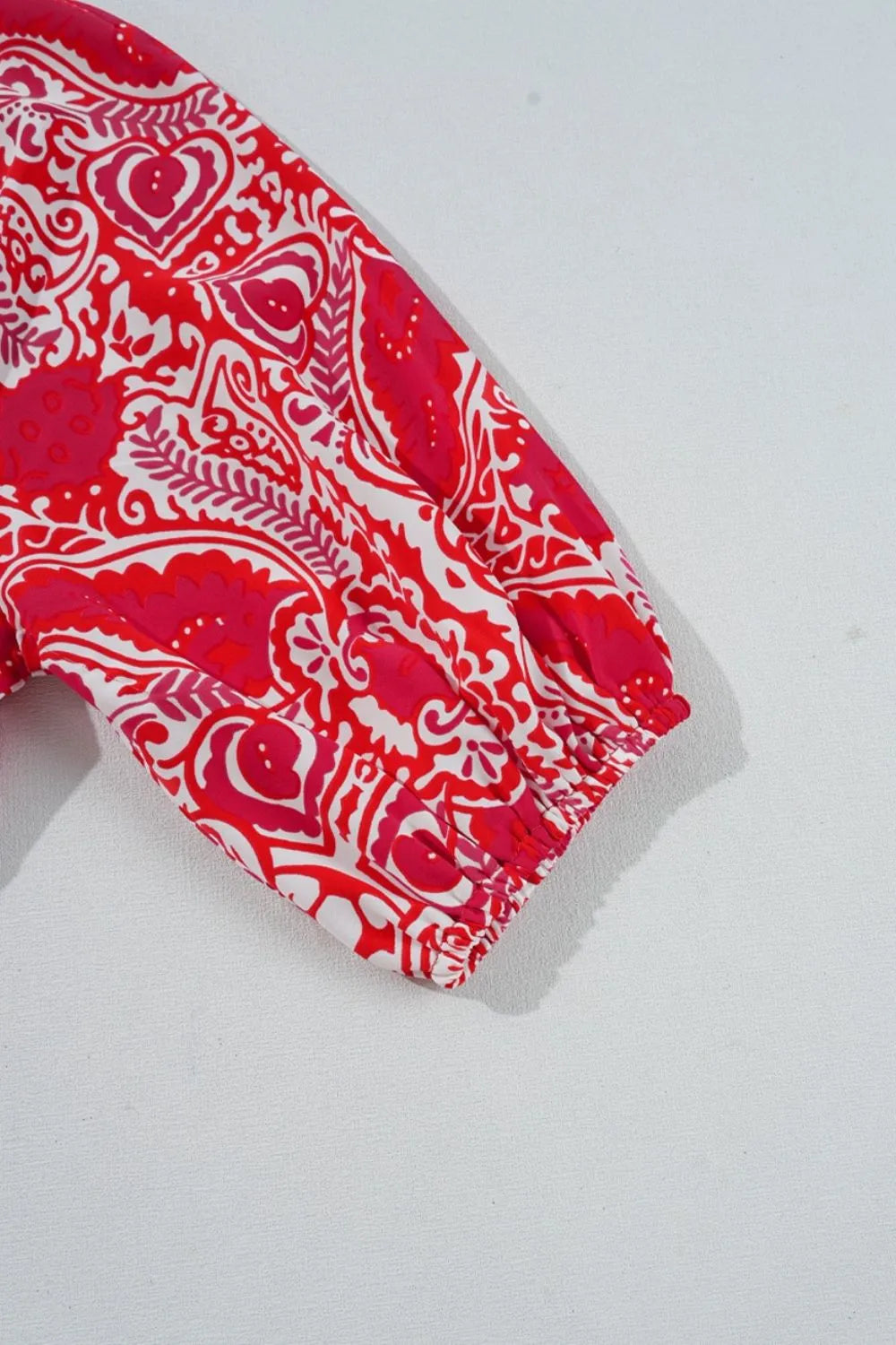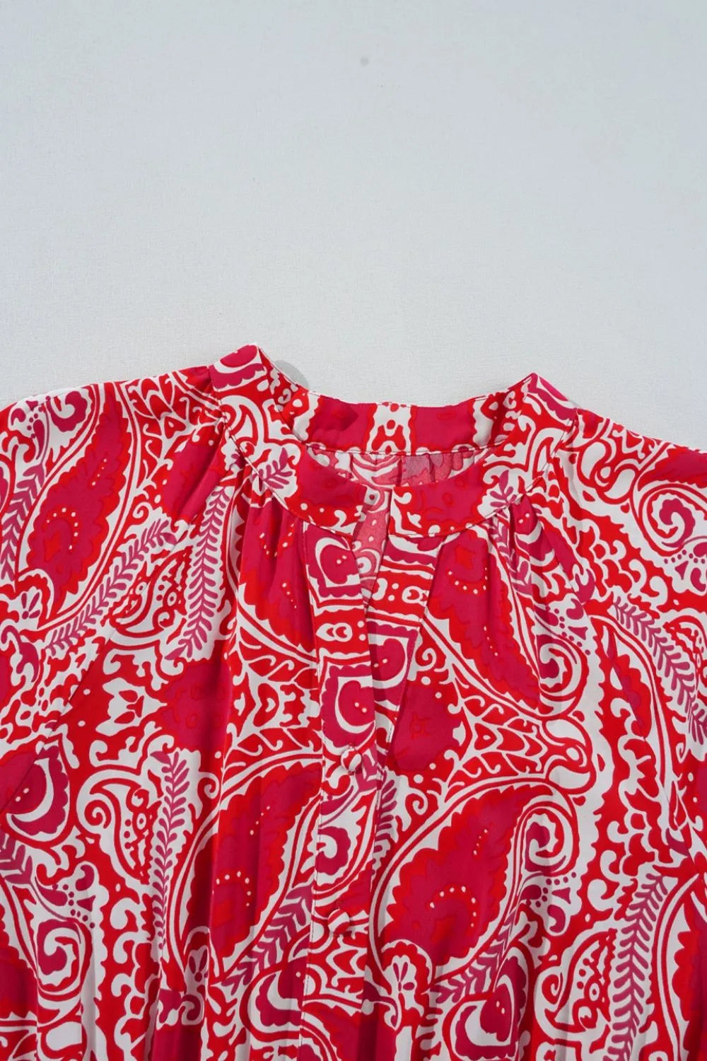 Vestido Largo Rojo Estampado Paisley con Abertura Lateral