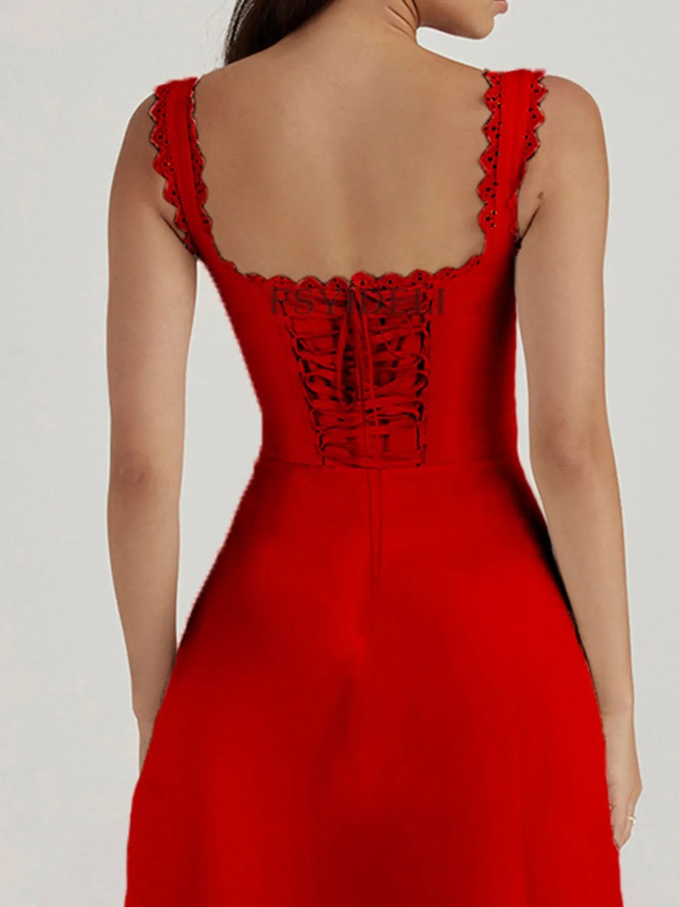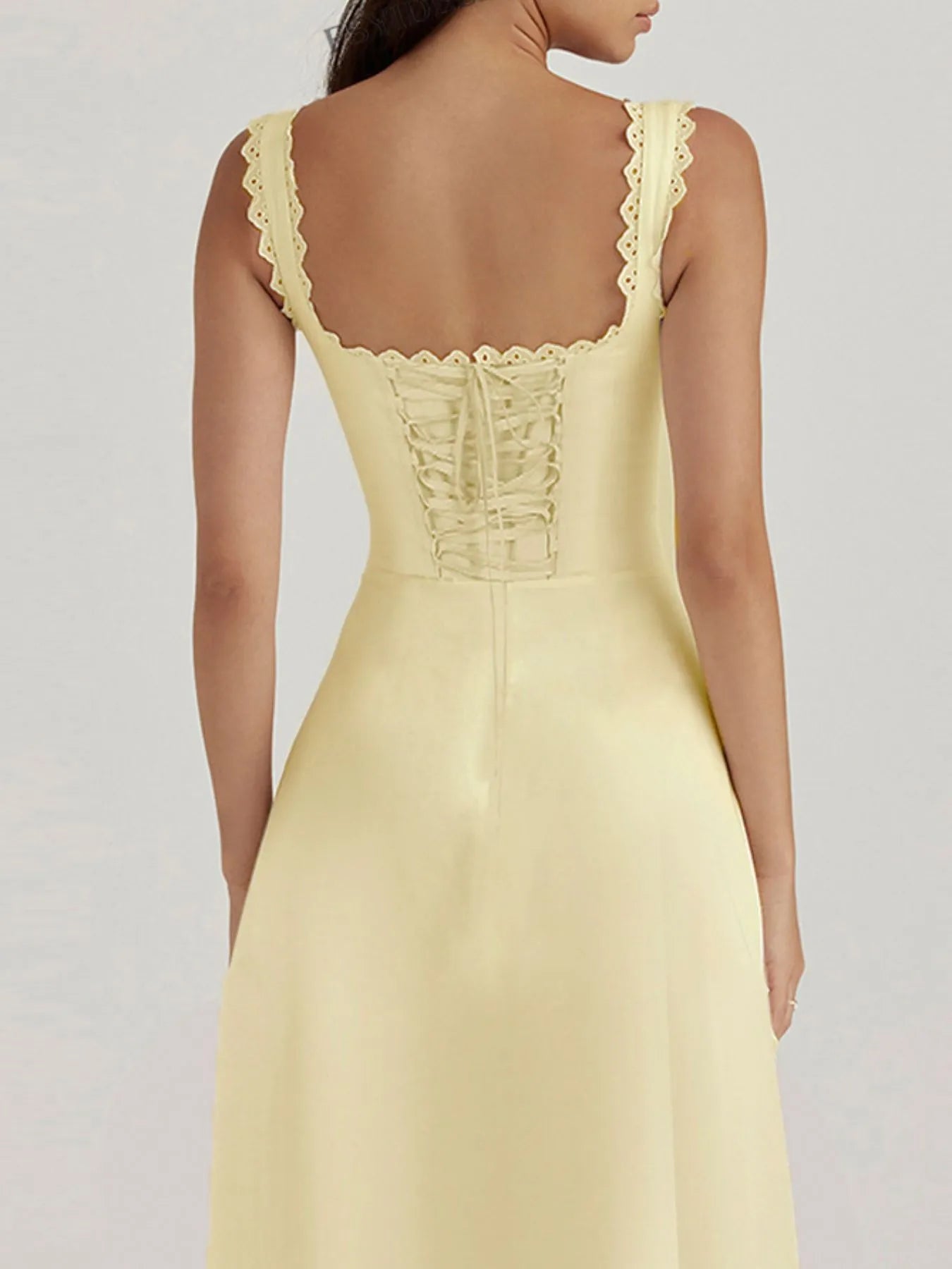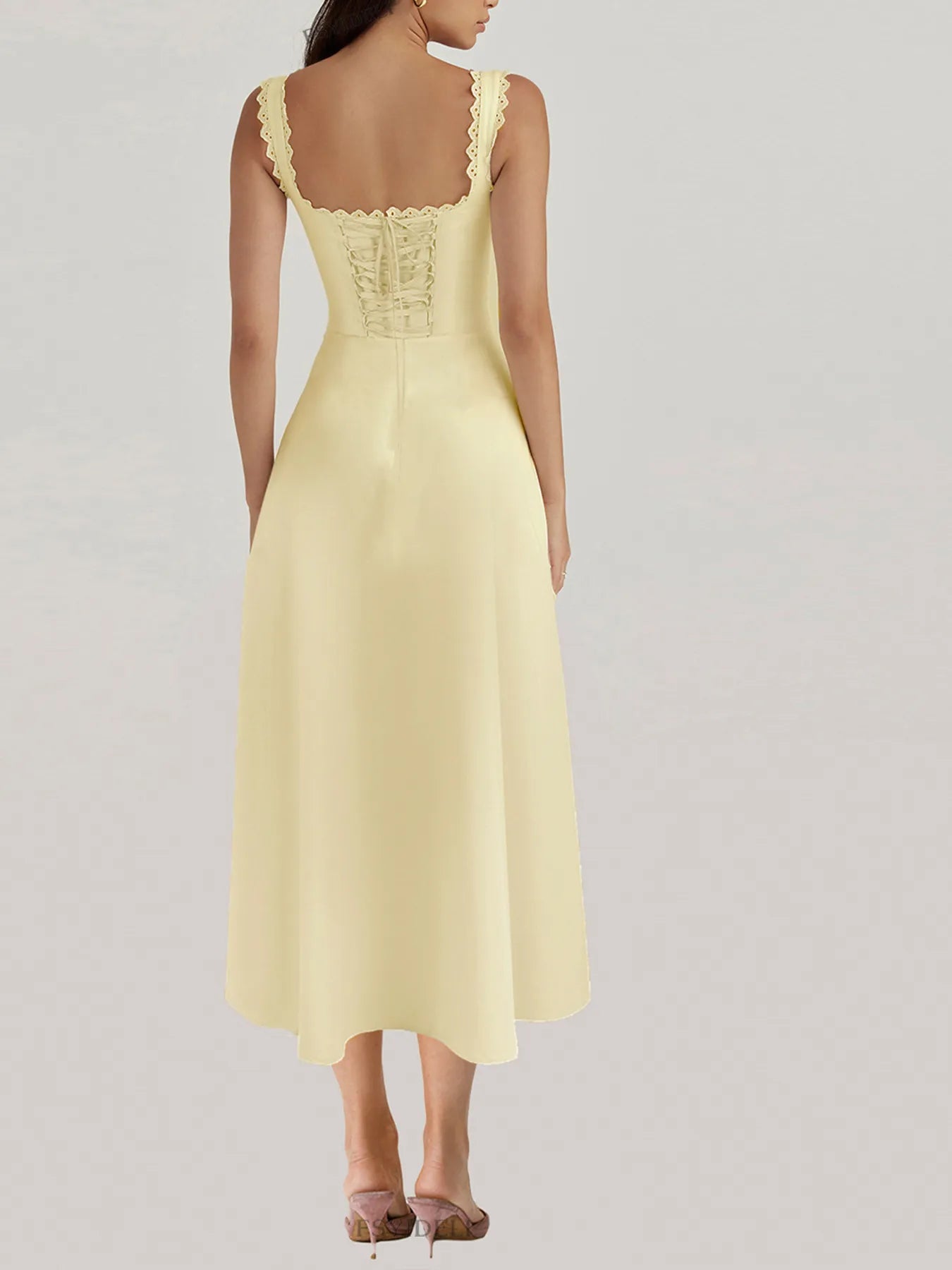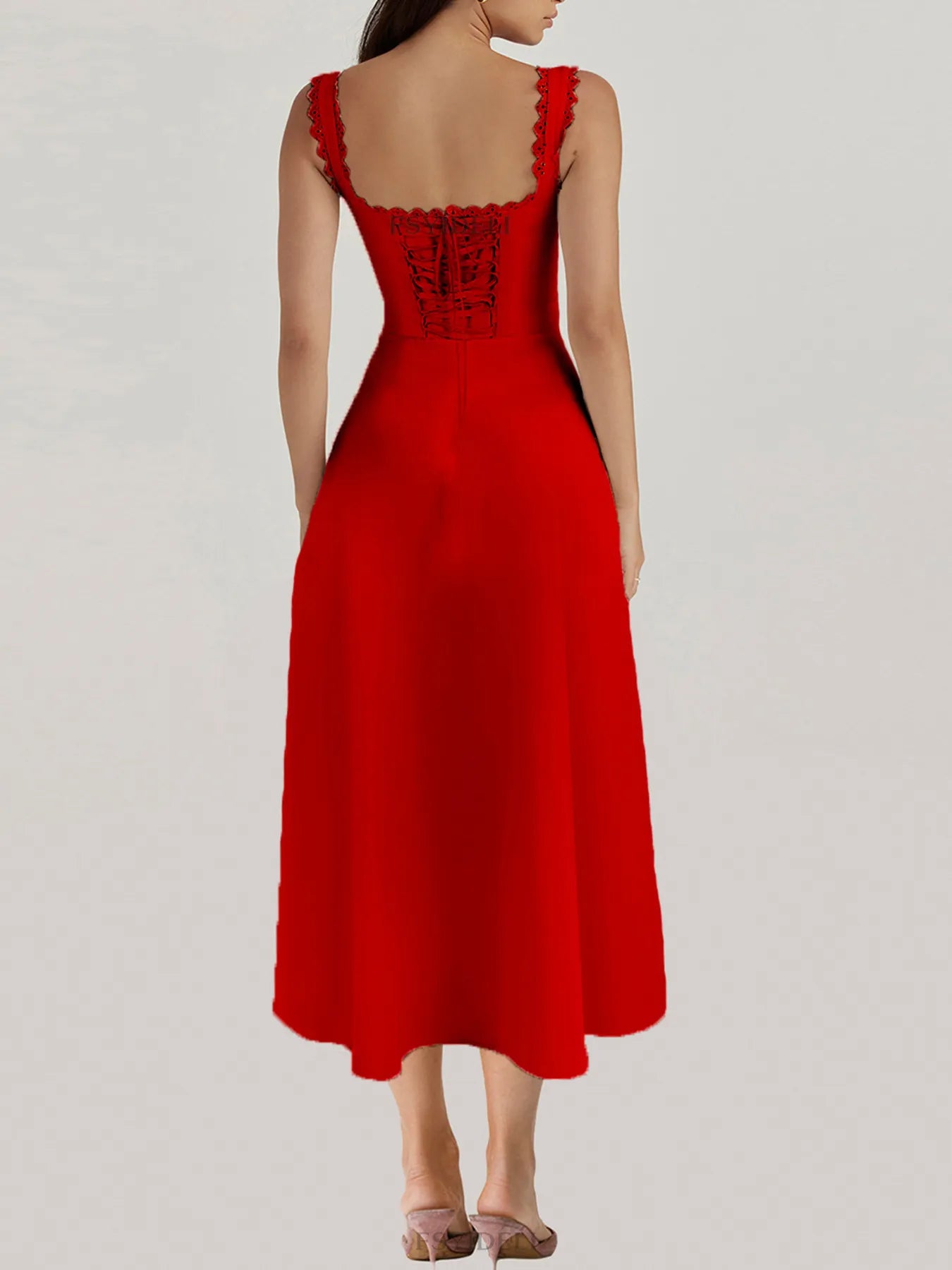 Vestido Midi con Escote en V y Detalle de Encaje
