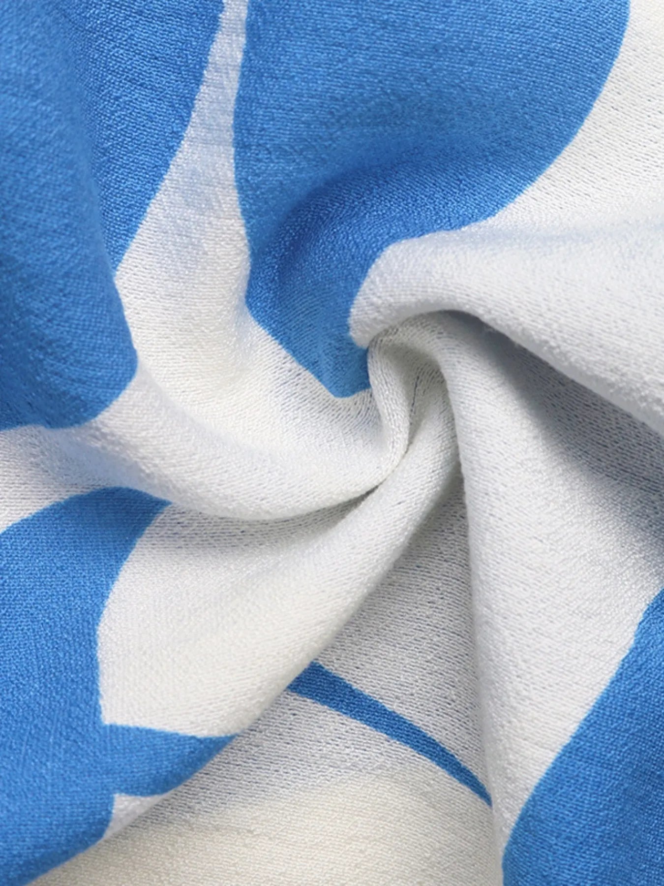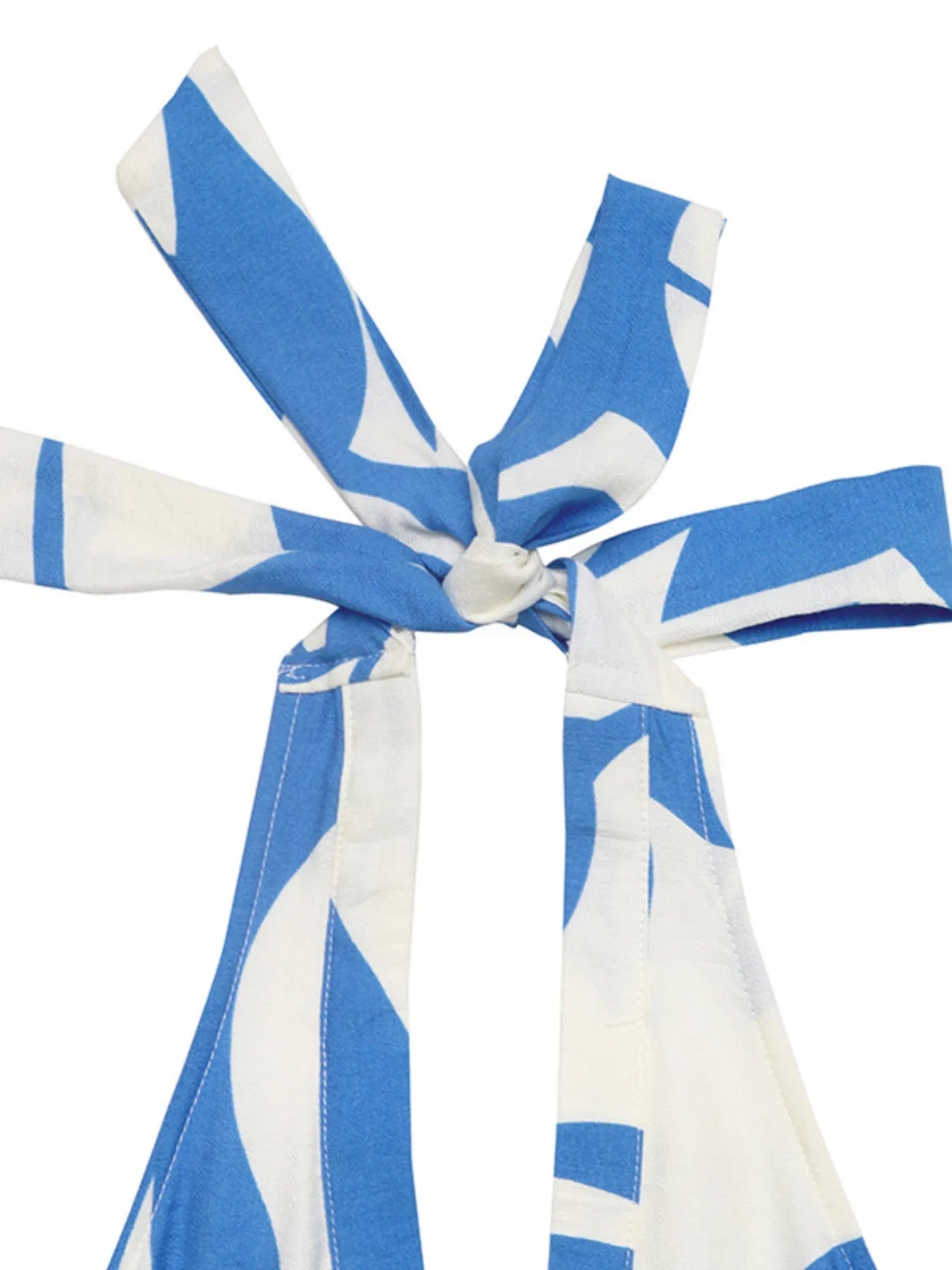 Vestido Midi Azul con Estampado de Hojas y Cuello Halter